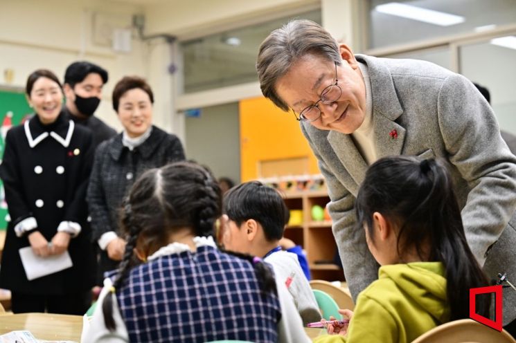 이재명 더불어민주당 대표가 6일 서울 강서구 방화초등학교에서 ’온동네 초등돌봄' 현장간담회에 참석하기 전 돌봄교실을 둘러보고 있다. 사진=국회사진기자단