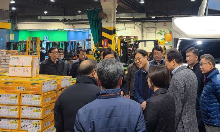 이 실장은 현장에 도착하자마자 농림축산식품부로부터 주요 농산물 수급 동향을 보고 받고, 농산물 경매가 진행되는 현장을 직접 참관해 주요 품목별 도매가격 변동과 품질을 직접 확인하는 등 물가 상황을 파악했다.