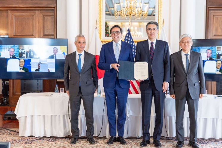 14일 일본 도쿄 미국 대사관에서 람 이매뉴얼 주일본 미국 대사, 윤덕민 주일 한국 대사가 참석한 가운데 미국 기술기업 IBM이 한국, 미국, 일본 대학의 양자컴퓨터 인력 양성을 지원하는 성명이 발표됐다.