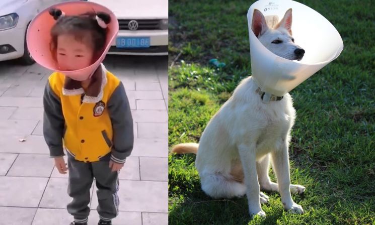 한편 중국에선 과거에도 개 깔때기를 유아용으로 활용하는 시도가 나온 바 있다. 지난해 10월 한 중국 블로거가 위치추적장치가 달린 반려견 전용 개 깔때기를 아이에게 착용시키는 걸 추천해 중국 사회에서 논란이 불거지기도 했다.