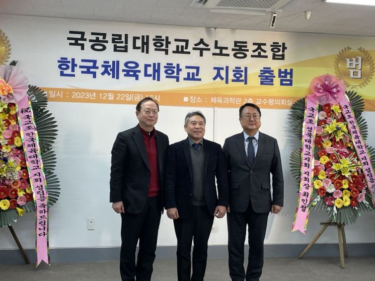 한국체대 국교조 지회 설립추진위원회는 22일 오후 4시 한국체대 체육과학관 2층 교수평의회실에서 국교조 정식 출범식을 열었다. 지회장을 맡은 윤창선 한국체대 체육학과 교수는 "교수들의 교권 보호와 권익 향상, 그리고 학생들의 인권보호, 대학 사회 속 의사결정의 민주화를 이루기 위해 노력할 것"이라며 "국립대학 민주화와 고등교육 정상화에 동참하겠다"고 말했다.