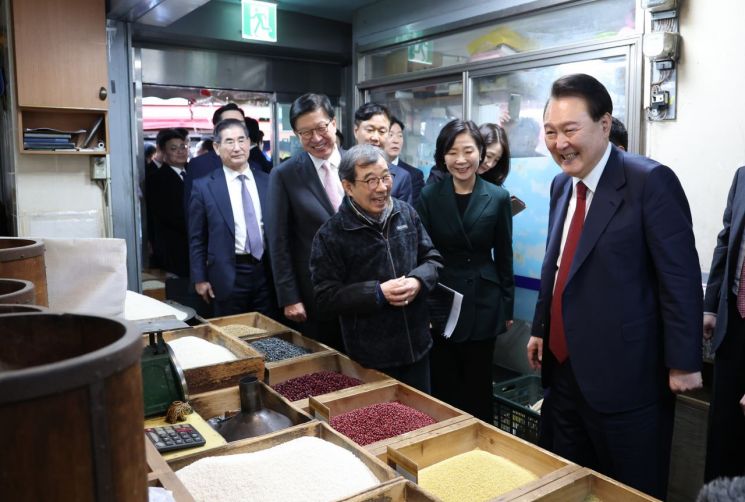 윤석열 대통령은 13일 부산의 대표 전통시장인 동래시장을 찾았다. 설 연휴 이후 민생 중심 국정운영을 강화하겠다는 계획에 따른 일정이다.