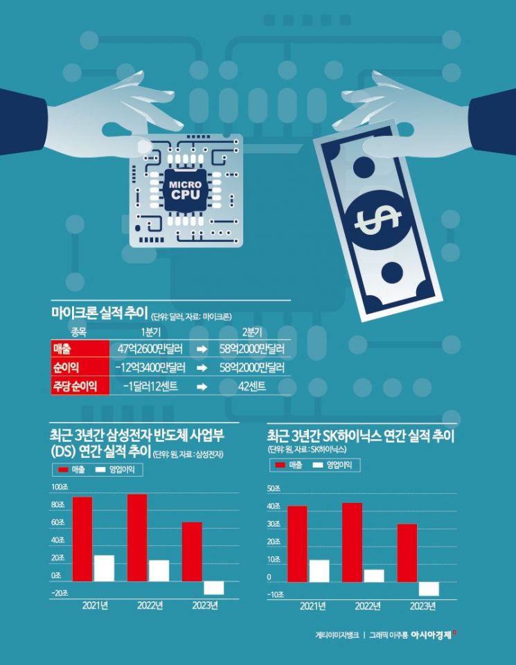 미국 마이크론이 예상을 뛰어넘는 깜짝 실적을 기록하면서 삼성전자와 SK하이닉스의 1분기 실적에도 청신호가 켜질 전망이다. 반도체 가격 상승과 수요 증가 등 업황 회복에 힘입어 삼성전자는 지난해 1분기부터 이어지던 적자를 끊어낼 것으로 보이며, 지난해 4분기부터 흑자로 전환한 SK하이닉스 역시 실적 개선이 더욱 강해질 것으로 기대된다. 이런 가운데 미국 정부는 인텔에 200억달러(약 26조8000억원)에 달하는 대규모 반도체 보조금과 대출을 약속하는 등 자국 반도체 경쟁력 확보를 위해 적극적으로 나서며 글로벌 반도체 전쟁은 더욱 격화될 것으로 보인다.