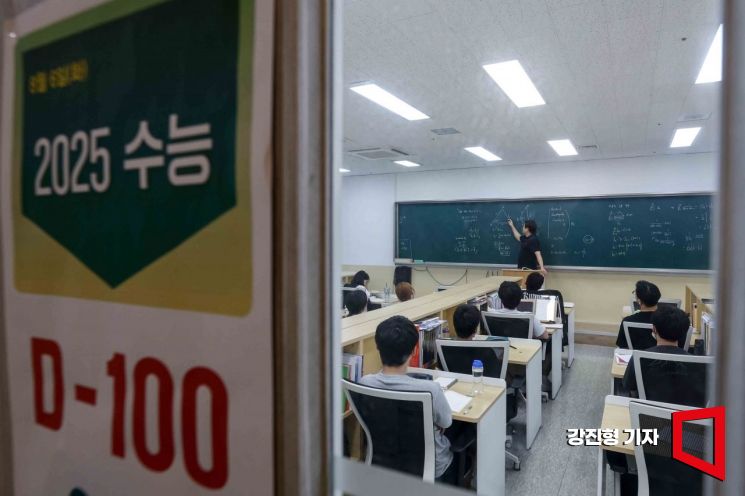 2025년 대학수학능력시험을 100일 앞둔 6일 서울 마포구 종로학원 강북본원에서 수험생들이 강의를 듣고 있다.