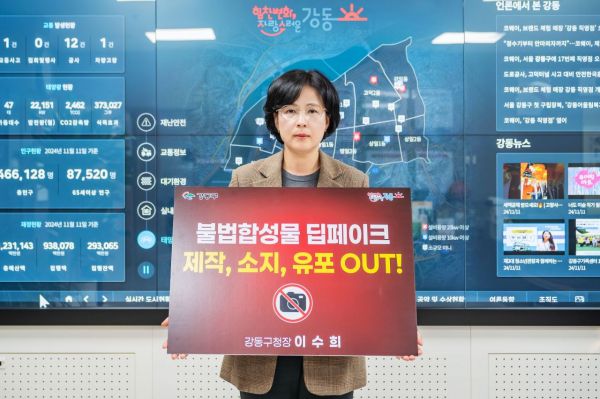 이수희 강동구청장이 ‘딥페이크(이미지 합성 기술) 범죄예방 릴레이 챌린지’에 동참했다.
