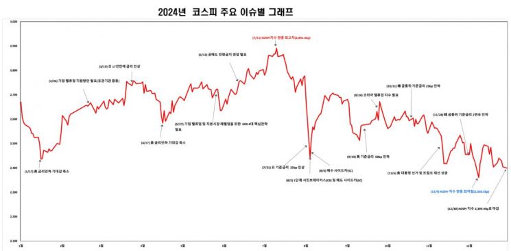 거래소 관계자는 "코스피는 상반기 밸류업 프로그램에 대한 기대감 및 외국인 매수세 유입 등으로 상승세를 보이며 연고점인 2891포인트(7월11일)에 도달했으나 8월 이후 경기침체 우려, 트럼프 트레이드 및 정치적 불확실성 등으로 변동성이 확대되면서 하락세를 보였다"고 설명했다.
