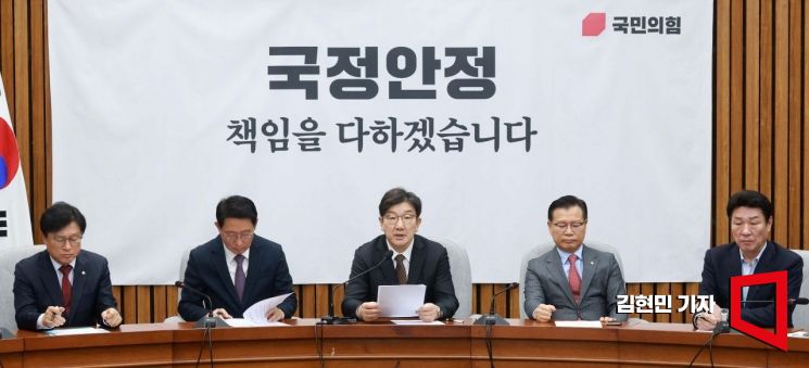 권성동 국민의힘 원내대표가 18일 국회에서 열린 원내대책회의에서 발언하고 있다.