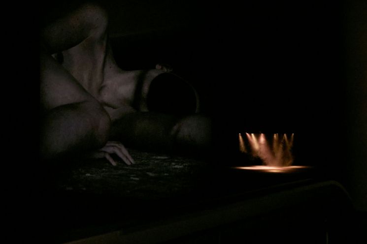 ‘휴먼마스크’는 후쿠시마 주변 핵 오염 구역을 비추는 드론 영상을 스크린에 띄운다. 버려진 식당에서 원숭이가 어린 소녀의 가면을 쓰고 사고 전 가게 일을 도왔던 동작을 반복한다. 모든 것이 멈춘 세상에서 가면 쓴 원숭이는 인간의 잔존 이미지를 떠올리게 한다. ‘인간’이란 가면에 대한 묵직한 질문을 던진다.