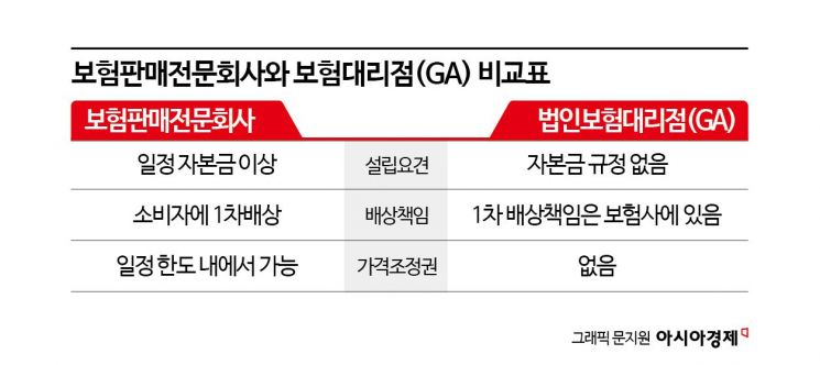 보험판매전문회사는 보험계약 체결을 대리만 하는 기존 GA와 달리 계약 체결을 중개하는 회사다. GA가 일정 조건을 갖추고 보험판매전문회사가 되면 금융사 수준의 역할과 책임이 부여된다. 대신 보험사를 상대로 사업비·수수료 등을 협상할 수 있는 권한이 생긴다. GA 업계가 2008년과 2015년 제도 도입을 추진했으나 보험사 반발로 무산됐다.