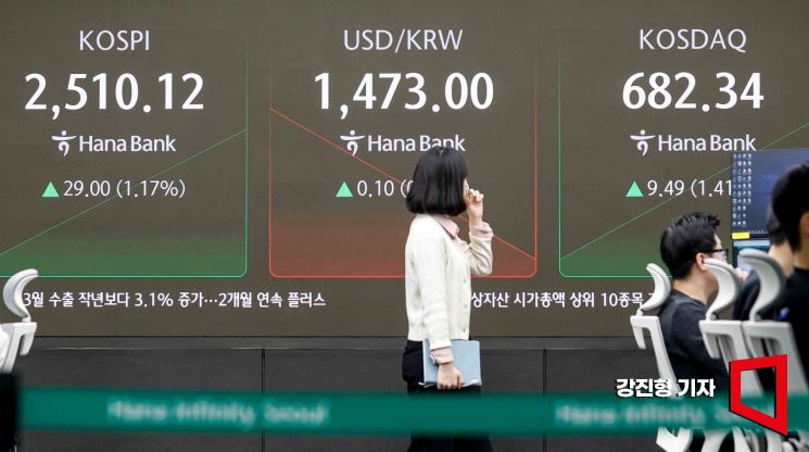코스피 지수가 전 거래일 대비 1.21% 오른 2511.24원에 장을 시작한 1일 서울 중구 하나은행 딜링룸에서 딜러들이 업무를 보고 있다. 이날 원달러 환율은 전 거래일 보다 0.1원 오른 1473원으로 거래를 시작했다.