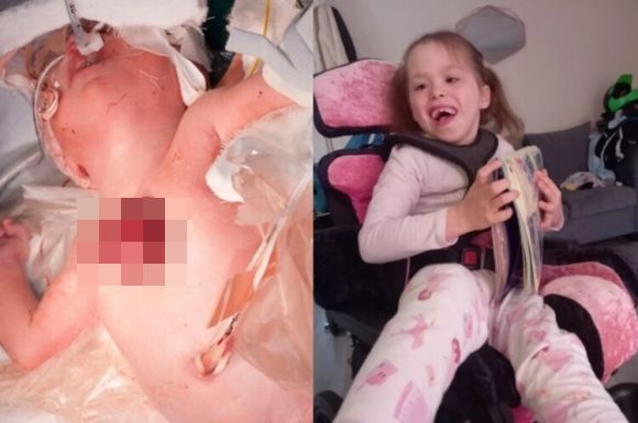 심장이 몸 밖으로 나온 상태로 태어났던 영국 소녀가 흉부 재건 수술에 성공했다.