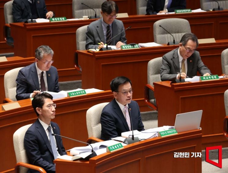 최상목 경제부총리 겸 기획재정부 장관이 29일 국회 예산결산특별위원회 전체회의에서 열린 추가경정예산 심사 종합정책질의에 참석해 의원 질의에 답변하고 있다. 2025.4.29 김현민 기자