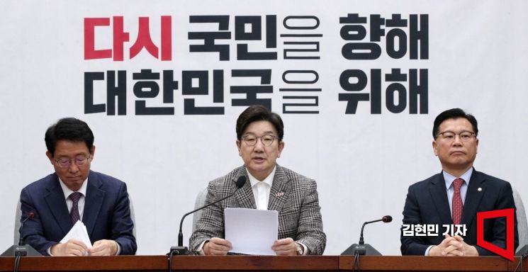 권성동 국민의힘 원내대표가 2일 국회에서 열린 원내대책회의에서 발언하고 있다.