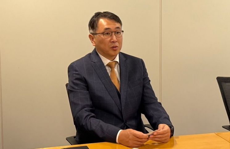 김상부 세계은행(WB) 디지털전환 부총재가 4월 24일(현지시간) 미국 워싱턴D.C. WB 부총재 사무실에서 열린 주요 20개국(G20) 재무장관·중앙은행총재 회의 동행 기자단과의 간담회에서 발언하고 있다. G20 재무장관·중앙은행총재 회의 동행 기자단