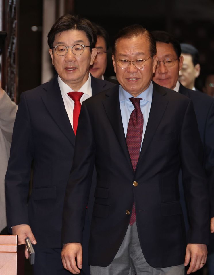 박 원내대변인은 "의원들 전원은 경내 대기하면서 권영세, 권성동 두 분이 돌아오는 즉시 후속 결과를 이어서 논의하고, 다음 행보를 상의할 것"이라고 했다.