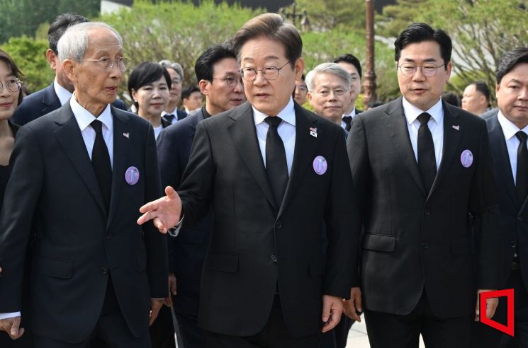 이재명 더불어민주당 대선 후보가 18일 광주 북구 국립5·18민주묘지에서 열린 '제45주기 5·18 민주화운동기념식'에 참석하고 있다. 2025.5.18 국회사진기자단