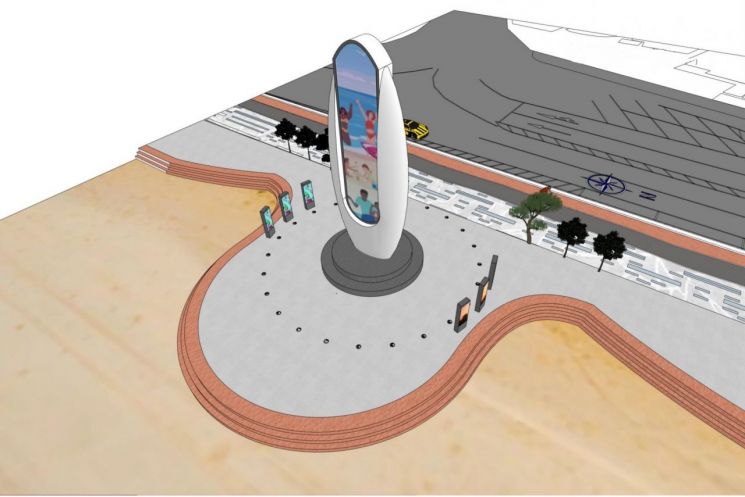 '빛의 시계탑' 조형물 디자인은 수평선 위로 떠 오르는 태양과 바다, 빛과 파도의 이미지를 형상화했으며, 밤에는 LED 패널 조명으로 아름다운 야경을 연출할 예정이다.