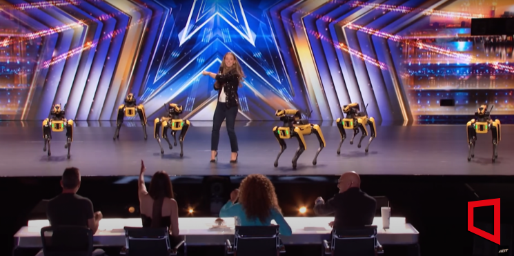 현대차그룹 로봇 전문 기업 보스턴다이나믹스의 사족보행 로봇 '스팟'이 미국 '아메리카 갓 탤런트'에서 단체 군무를 선보여 눈길을 끌었다.