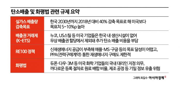 기업이 신규화학물질 제조·수입 시 '화학물질의 등록 및 평가 등에 관한 법률(화평법)'에 따라 '신규화학물질 등록'을 이행한 경우, '산업안전보건법(산안법)'에 따른 '신규화학물질 유해·위험성 조사보고서' 대상에서 제외된다. 다만, 화평법상 신규화학물질 등록기준은 연간 1t 이상인 반면 산안법상 기준은 연간 100kg 이상이다.
