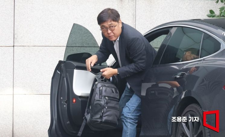 최휘영 문화체육관광부 장관 후보자가 14일 서울 종로구 국립현대미술관에 마련된 인사청문회 준비 사무실로 첫 출근하고 있다.