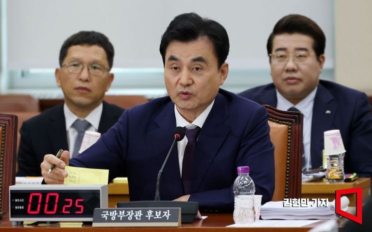안규백 국방부 장관 후보자가 15일 국회 국방위원회에서 열린 인사청문회에서 의원 질의에 답변하고 있다.
