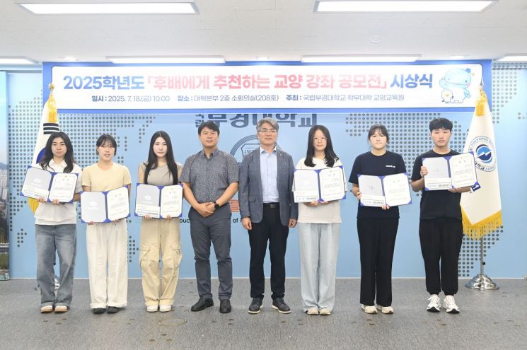 국립부경대학교(총장 배상훈)는 18일 대학본부 2층 회의실에서 '2025년 후배에게 추천하는 교양강좌 공모전' 시상식을 개최했다.