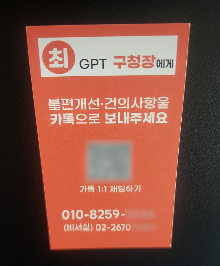 그는 "구청장 공약도 중요하지만, 그보다 주민들의 불편 사항이나 꼭 개선해야 하는 곳에 예산이 먼저 반영돼야 한다"며 "사용자가 필요한 걸 요청하면 바로 응답해 해답을 제시하는 챗GPT처럼 편리하게 소통하고, 문제를 잘 해결하겠다는 뜻으로 명함에 그렇게 넣었다"고 했다.
