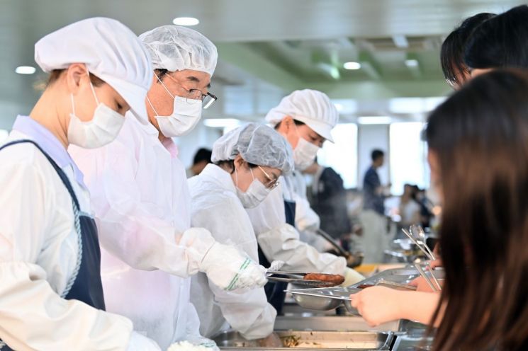 앞치마와 위생모를 착용한 그는 "오늘은 제가 여러분의 식사를 서빙하겠습니다"라며 미소를 띤 채 배식을 시작했고, 예상치 못한 등장에 학생들의 얼굴에는 놀라움과 함께 웃음이 번졌다.