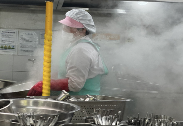 인력 부족도 주요 원인이다. 학교비정규직노조 광주지부 관계자는 "500인분을 5명이 조리하면 1인당 100인분이지만, 1명이 빠지면 150인분을 만들어야 한다"며 "노동 강도가 기하급수적으로 올라간다"고 했다. 인력이 충분히 확보돼야 교대·휴게시간이 가능하고, 열 노출도 줄일 수 있다는 설명이다.