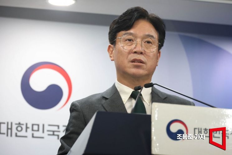 김영훈 고용노동부 장관이 29일 서울 종로구 정부서울청사에서 노동조합 및 노동관계조정법 개정안(노란봉투법) 관련 브리핑을 하고 있다.