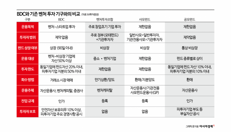 BDC, 자산 절반 이상 벤처에 투자하는 공모펀드