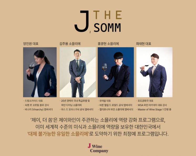 제이와인컴퍼니 관계자는 "J, THE SOMM은 단순한 교육 프로그램을 넘어 한국 와인 문화의 질적 성장을 위한 투자"라며 "참가자들이 이번 과정을 통해 한 단계 더 높은 전문가로 도약할 수 있도록 아낌없이 지원하겠다"고 밝혔다.