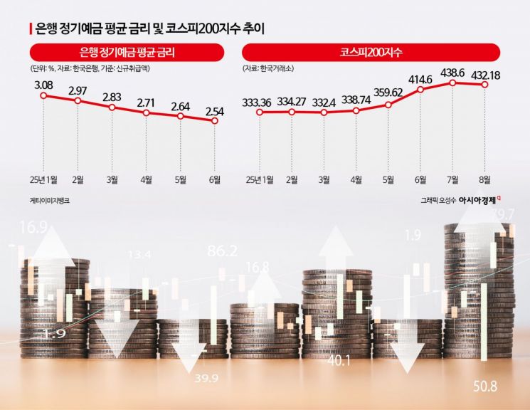 이 상품이 뜨는 것은 저금리에 코스피 상승세가 맞물린 영향이다. 금리 인하기에 접어들면서 은행의 정기예금 금리는 급격히 하락하고 있다. 한국은행에 따르면 은행의 정기예금 평균 금리(신규취급액 기준)는 올해 1월 3.08%에서 6월 2.54%까지 떨어졌다. 코스피 200 지수 역시 최근 들어 급등세를 보이고 있다. 한국거래소에 따르면 올해 1월 333.36이었던 코스피 200 지수는 올 6월 400을 넘었고, 7월 438.60까지 뛴 것으로 나타났다.
