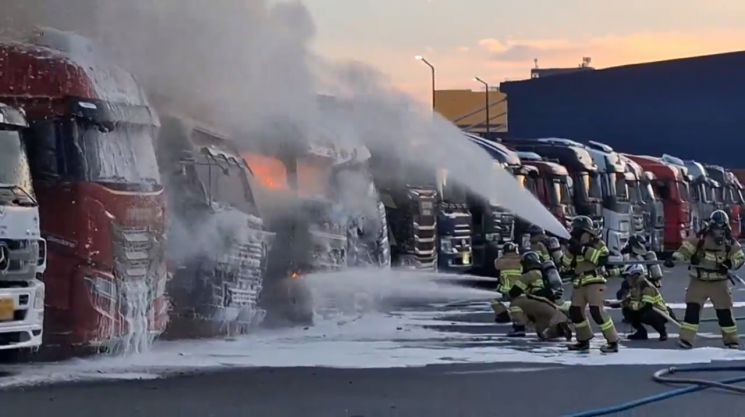 인명피해는 없었으나 차량 3대가 완전히 불타고 1대는 절반이 타는 등 소방서 추산 2억5000만원 상당의 재산피해가 났다.