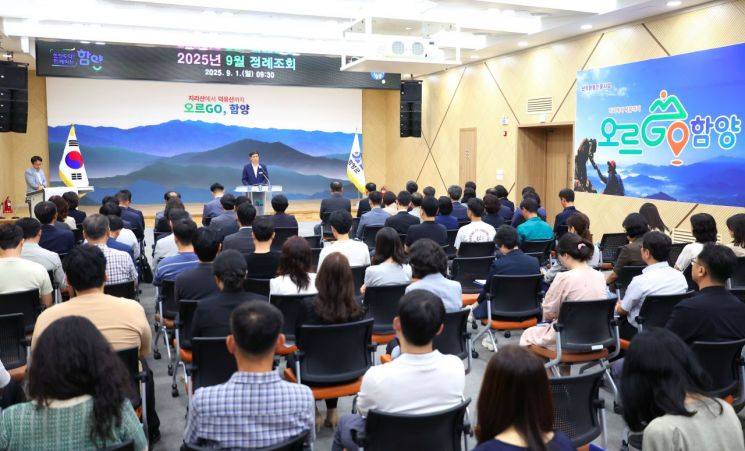 경남 함양군은 군청 대회의실에서 직원 120여 명이 참석한 가운데 '9월 정례조회'를 개최했다고 2일 밝혔다.