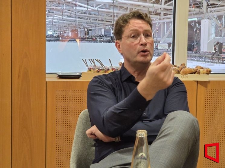8일(현지시간) 독일 뮌헨에서 열린 'IAA 모빌리티 2025'에서 열린 메르세데스-벤츠 글로벌 미디어 간담회에서 올라 칼레니우스 메르세데스-벤츠 회장(이사회 의장)이 발언하고 있다. 오현길 기자