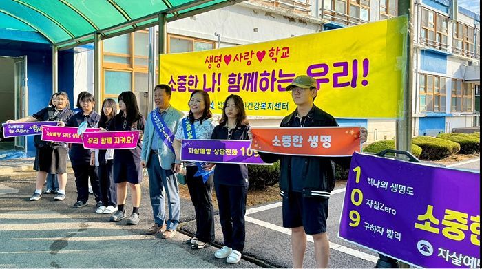 첫날인 지난 10일 압해중학교 학생과 교직원, 압해파출소, 신안군정신건강복지센터가 협력해 '등교 맞이' 홍보 활동을 진행했다. 학생들에게 자살 예방 상담전화 109와 청소년 모바일 상담 서비스 '다들어줄개'를 안내하며 청소년 자살예방 인식 개선의 중요성을 강조했다.