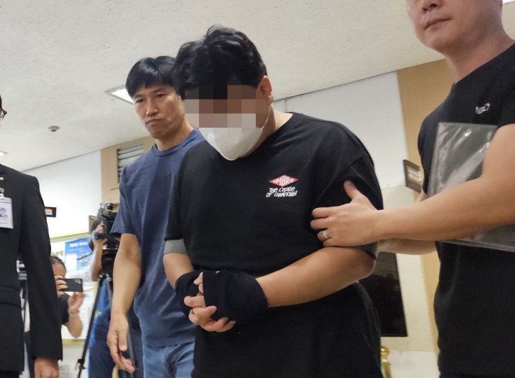 15일 대구지법에서 생후 35일된 아들을 때려 숨지게 한 30대 아빠가 구속 전 피의자 심문(영장실질심사)을 받기 위해 영장 실질 법정으로 들어가고 있다. 2025.9.15 연합뉴스