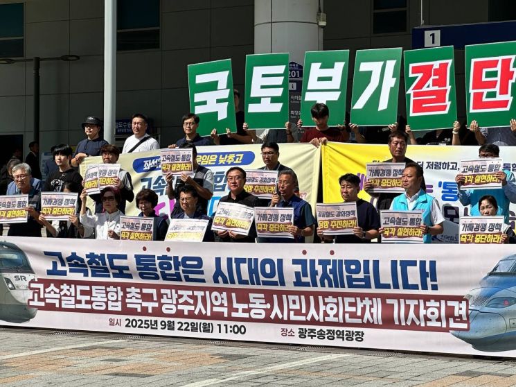 광주 노동·시민단체가 고속철도 좌석 공급난 등 호남 교통 인프라 문제를 해결하기 위해선 KTX와 수서고속철도(SRT)를 통합 운영해야 한다고 주장했다.