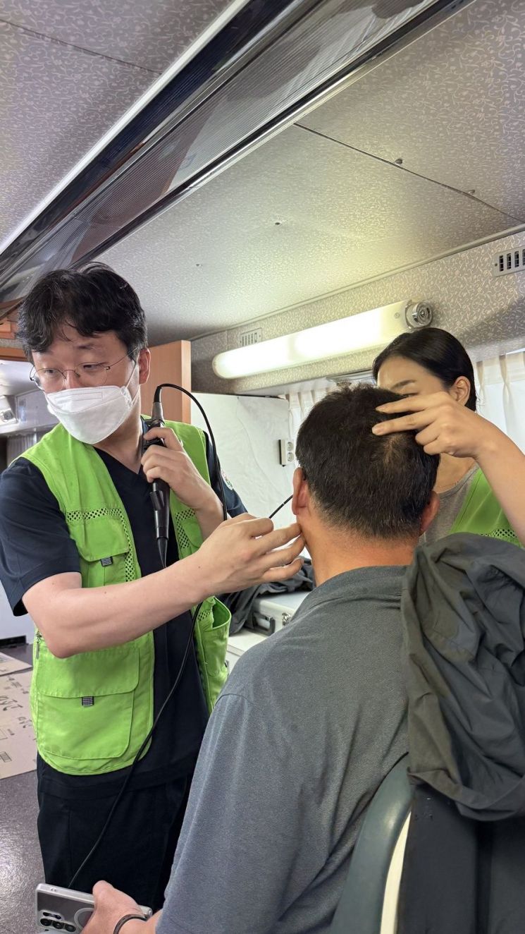 이날 봉사는 고군면 노인회관에서 진행됐으며, 현장에서 접수부터 진료, 검사, 치료까지 한 번에 받을 수 있는 '원스톱 진료 시스템'을 갖췄다. 전남대병원은 순환기내과, 재활의학과, 이비인후과, 치과 등 4개 진료과 전문의와 간호사, 행정 인력을 포함해 10여명의 의료진이 참여했다. 특히 의료진은 고혈압·당뇨 등 만성질환 관리 상담과 함께 순환기내과 초음파 검사, 재활의학과 주사 치료, 이비인후과 내시경 검사, 치과 발치 및 신경치료 등 세분화된 진료를 제공했으며, 필요한 환자에게는 의약품도 지원했다.