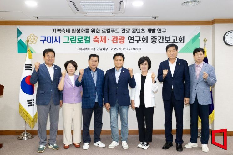 구미시의회 의원 연구단체 '구미 그린 로컬 축제·관광 연구회'(대표의원 김영태)는 지난 26일 구미시의회 3층 간담회장에서 '로컬푸드 활용 축제콘텐츠 개발을 통한 관광 활성화 방안 연구' 용역 중간보고회를 개최했다.