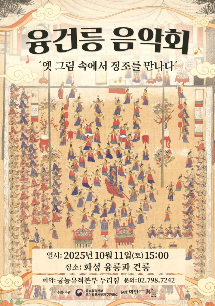 국가유산청 궁능유적본부는 11일 오후 3시 화성 융릉과 건릉에서 '융건릉 음악회 - 옛 그림 속에서 정조를 만나다'를 한다고 2일 밝혔다.