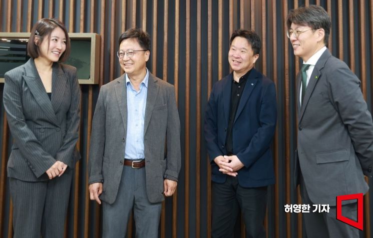 아시아경제 본사에서 열린 메가샌드박스 전문가 좌담회에 앞서 참석자들이 이야기를 나누고 있다. 왼쪽부터 손보미 스타씨드 대표, 정병규 국무조정실 규제혁신기획관, 이종명 대한상공회의소 산업혁신본부장, 박형곤 딜로이트 파트너. 허영한 기자