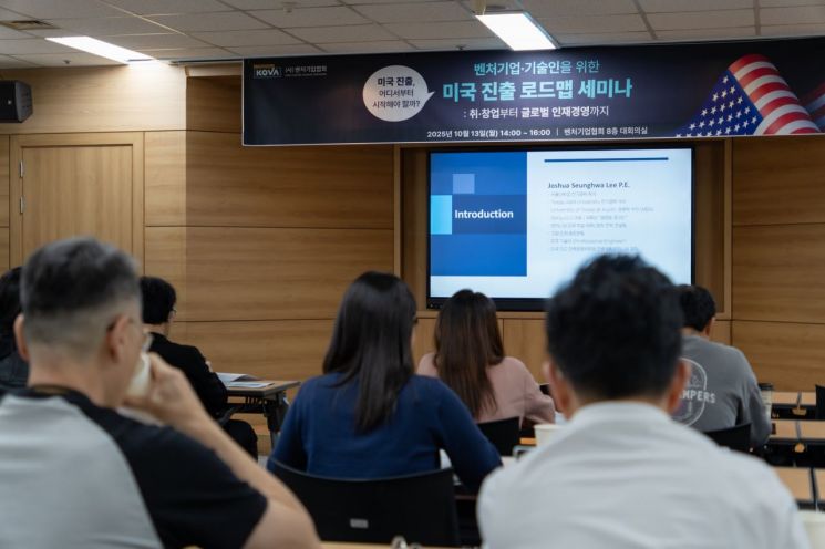 벤처기업협회는 13일 서울 구로구 협회 본사에서 미국 진출을 준비하는 벤처·스타트업 및 기술인을 대상으로 '미국 진출 로드맵 세미나'를 개최했다고 밝혔다.