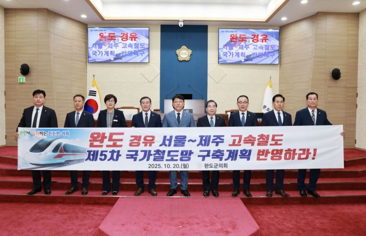 군의회는 "완도를 경유하는 고속철도 노선은 전남 서남권과 제주를 하나의 생활·경제권으로 연결할 수 있는 핵심 인프라다"며 "관광산업과 물류 효율성 제고 등 여러 방면에서 국가적 효과를 기대할 수 있다"고 밝혔다.