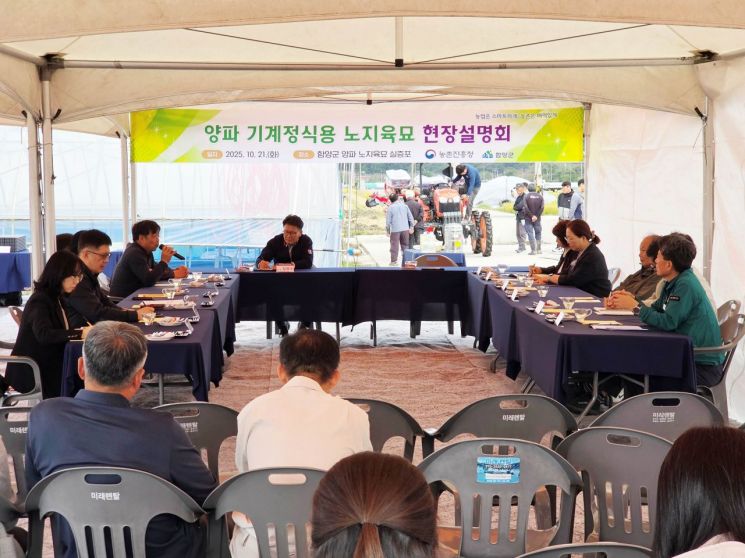 경남 함양군과 농촌진흥청은 한들 지역(함양읍 용평리)에서 '양파 기계 정식용 노지육묘 현장 설명회'를 개최했다고 23일 밝혔다.
