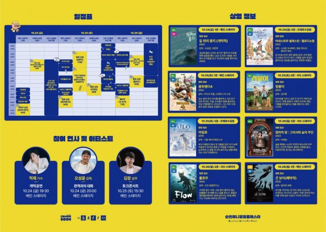 전남 순천시는 오는 24일 2025 순천애니멀필름페스타(SAFF)' 개막에 이어 31일 '순천 푸드앤아트페스티벌' 등 지역 축제가 잇따라 열린다고 23일 밝혔다.