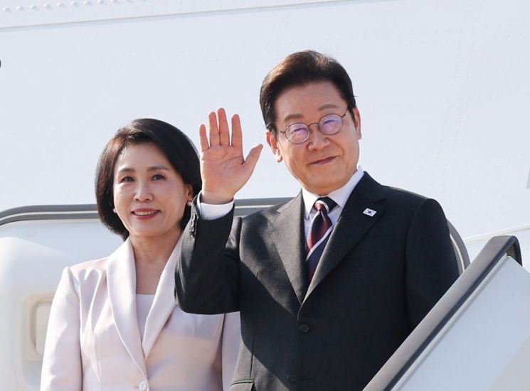 이 대통령은 이날 오전 김혜경 여사와 함께 경기 성남 서울공항에서 대통령 전용기인 공군 1호기 편을 통해 말레이시아로 출발했다. 이 대통령은 회색 정장에 파란색 회색 줄무늬 넥타이 차림이었다. 김혜경 여사는 연분홍 재킷과 치마 복장으로 이 대통령을 뒤따랐다.