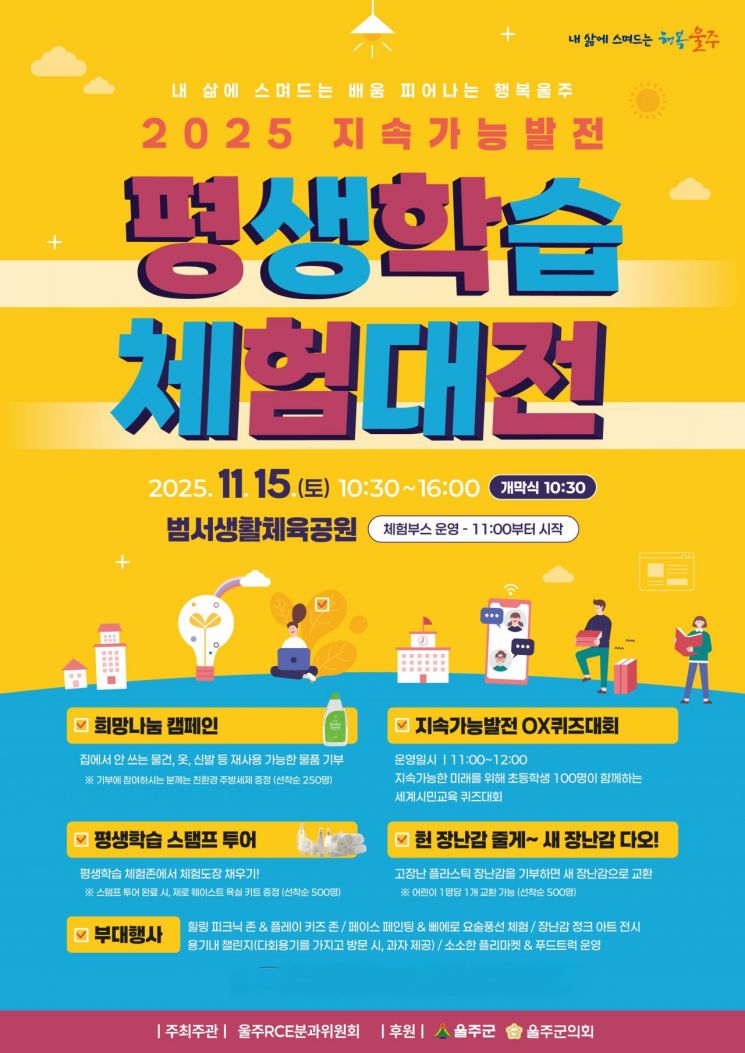 울산 울주군은 오는 15일 범서생활체육공원에서 '2025 울주 지속가능발전 평생학습체험대전'을 개최한다.