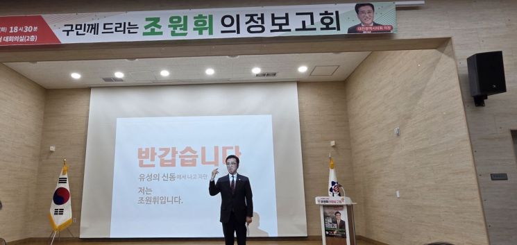 조 의장은 11일 신성동 행정복지센터에서 열린 '의정보고회'에서 "유성의 성장이 곧 대전의 미래이고, 대전의 발전이 대한민국의 미래"라며 "경제·복지·교육·안전·스마트 도시 유성을 만들겠다"며 이같이 말했다.